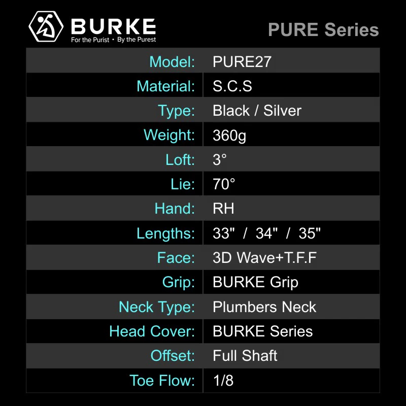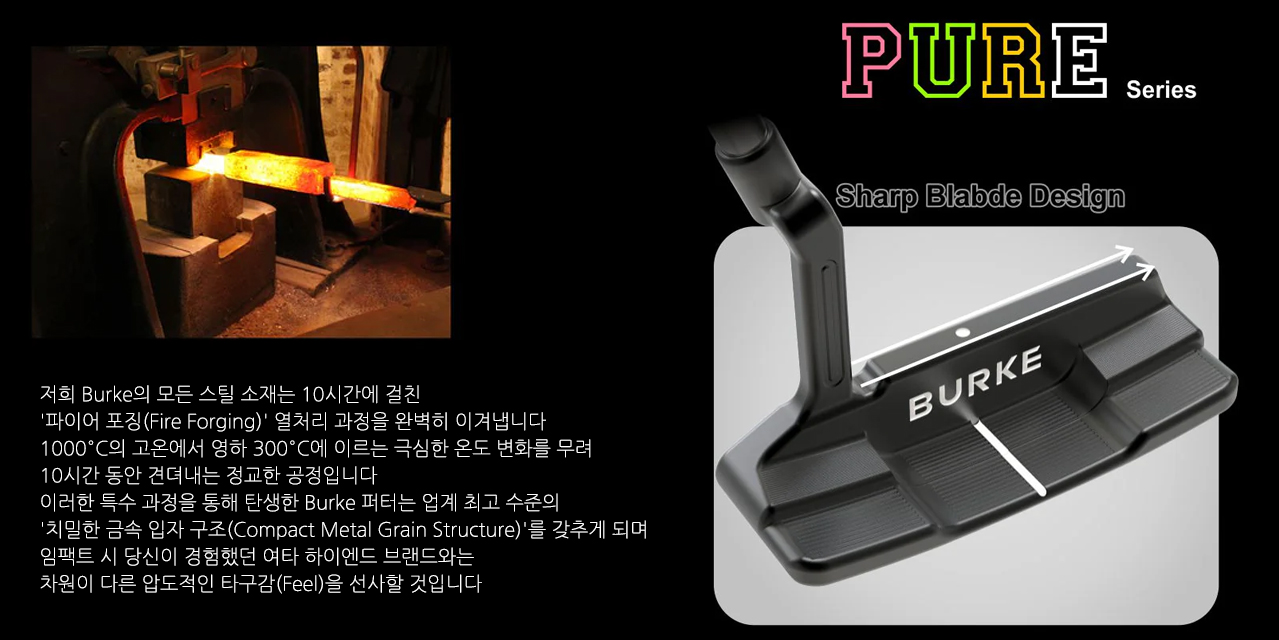 | Unique Tour Fit Face Putter Face Structure Design: Enhancing the Ball's Forward RollTOUR FIT Face (T.F.F.) 기술 Burke 퍼터의 투어 핏 페이스(Tour Fit Face, T.F.F.) 구조 설계는 가장 핵심적인 특징 중 하나입니다 이 독특한 디자인은 퍼터 페이스의 표면 텍스처와 탄성을 최적화하여 볼의 순회전(Forward Roll)을 획기적으로 향상시킵니다 이를 통해 견고한 타격감(Solid Impact)과 완벽한 피드백 사운드를 극대화합니다 실제 사용 시, 볼이 타격된 직후 불필요한 측면 스핀과 미끄러짐(Skidding)을 줄이고 훨씬 빠르게 안정적인 볼구름 상태에 진입하는 것이 확연히 드러납니다 결과적으로 퍼팅의 정확도와 일관성이 비약적으로 향상됩니다 Tour Fit Face는 장거리 퍼팅이든, 짧고 정교한 퍼팅이든 상관없이 볼의 구름 궤적을 더욱 효과적으로 제어할 수 있도록 도와주어, 퍼팅을 더욱 쉽고 정확하게 만들어 줍니다 |