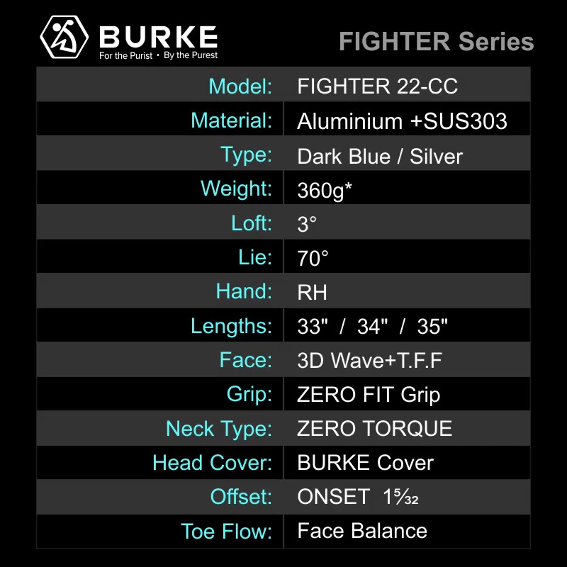 | Unique Tour Fit Face Putter Face Structure Design: Enhancing the Ball's Forward RollBURKE FIGHTR 퍼터는 타겟 록 얼라인먼트 시스템을 통해 완벽한 조준을 보장하며, 기존 대비 15% 높아진 '하이 CG(무게 중심)' 설계를 적용했습니다 이 혁신적인 하이 CG는 임팩트 시 볼에 강력한 순회전(Forward Roll)을 즉각적으로 부여하여, 스키딩을 최소화하고 볼이 목표 라인을 벗어나지 않도록 직진성을 극대화합니다 더불어 T.F.F. (Tour Fit Face) 기술은 최적의 탄성과 텍스처로 롤의 안정성을 높이는 동시에, 최상급의 타구음과 손맛을 제공합니다 페이스 뒤편의 센터 웨이트 시스템이 발생시키는 정교한 진동 주파수는 거리감과 힘 조절 능력을 향상시켜, 모든 퍼팅을 더욱 수월하고 정확하게 만들어 드립니다 |