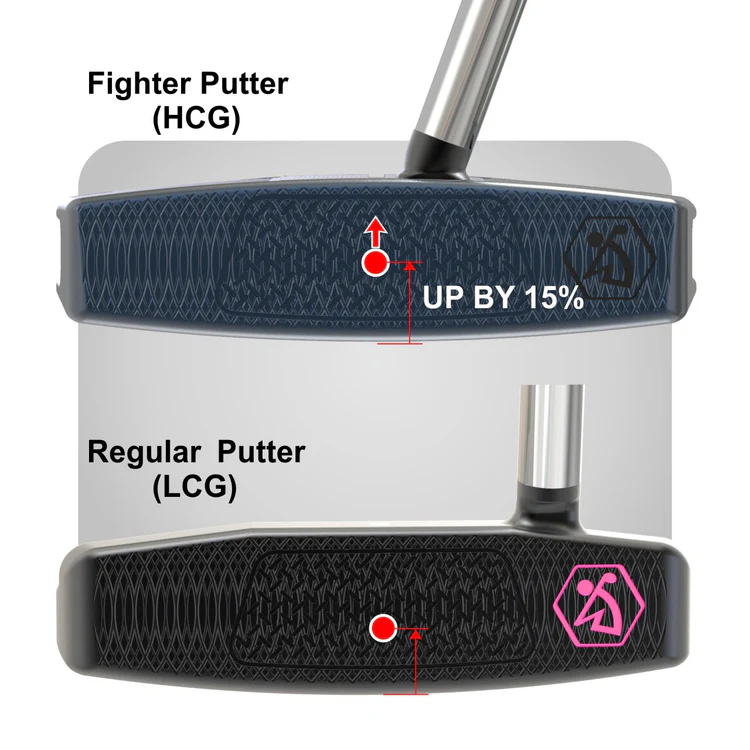 | High Center of Gravity Structure: Enhancing Forward Roll and Increasing MOI (Moment of Inertia)BURKE FIGHTR 퍼터는 일반 퍼터 대비 15% 높은 CG(무게 중심) 구조가 특징입니다 이 혁신적인 하이 CG 설계는 임팩트 시 볼에 즉각적인 순회전(Forward Roll) 힘을 강력하게 부여합니다 그 결과 볼의 미끄러짐(Sliding)을 줄여 불규칙한 지면의 영향을 최소화하고 타격 정확도를 높여 원하는 궤적을 따라 일관된 퍼팅 효과를 실현합니다 |