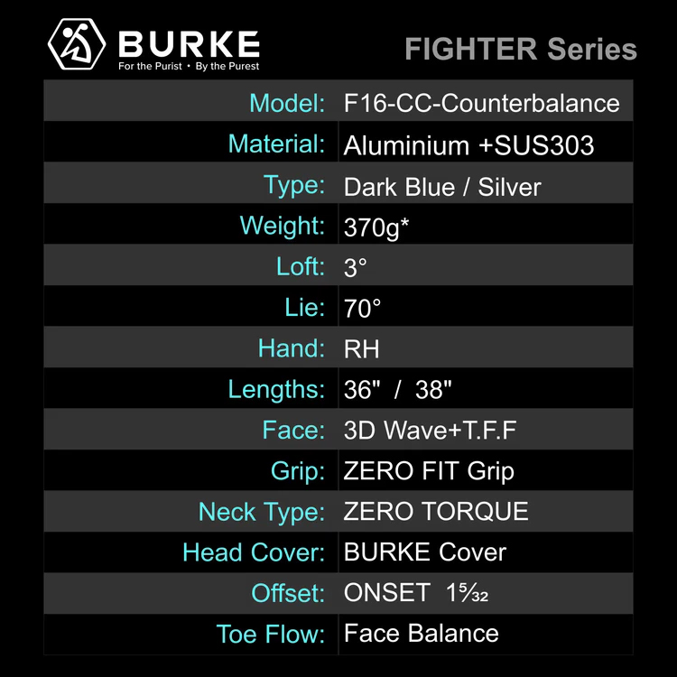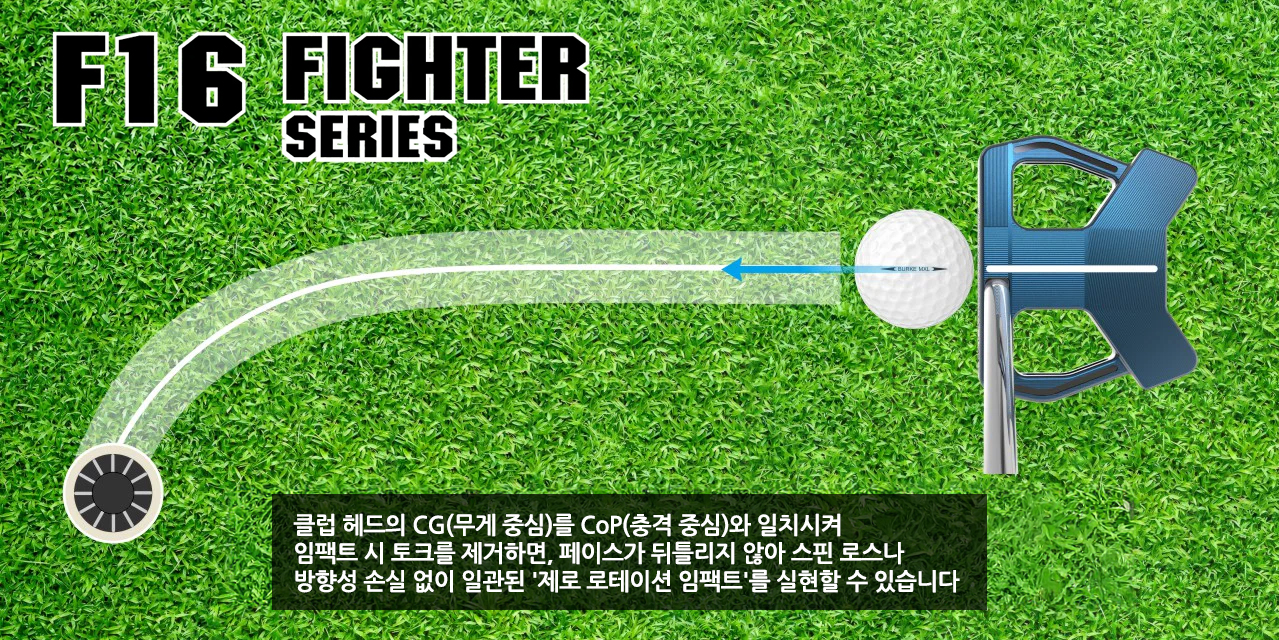| Unique Aesthetic DesignF16CC 퍼터는 F-16 전투기의 날렵한 모양을 본 뜬 컴팩트한 말렛 구조를 특징으로 합니다 높은 무게 중심(High Center of Gravity)은 F16이 관용성 있는 말렛 형태에서도 블레이드와 같은 컨트롤을 달성할 수 있도록 합니다 전통적인 블레이드 퍼터에 비해, 말렛 헤드는 임팩트 시 더 높은 수준의 관용성(forgiveness)을 제공합니다 F-16 전투기를 조종하는 것처럼, Burke Fighter F16은 여러분의 손에 안정적인 컨트롤을 가져다주도록 설계되었습니다 |
