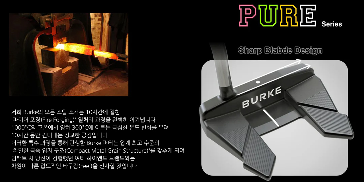 | Unique Tour Fit Face Putter Face Structure Design: Enhancing the Ball's Forward RollTOUR FIT Face (T.F.F.) 기술 Burke 퍼터의 투어 핏 페이스(Tour Fit Face, T.F.F.) 구조 설계는 가장 핵심적인 특징 중 하나입니다 이 독특한 디자인은 퍼터 페이스의 표면 텍스처와 탄성을 최적화하여 볼의 순회전(Forward Roll)을 획기적으로 향상시킵니다 이를 통해 견고한 타격감(Solid Impact)과 완벽한 피드백 사운드를 극대화합니다 실제 사용 시, 볼이 타격된 직후 불필요한 측면 스핀과 미끄러짐(Skidding)을 줄이고 훨씬 빠르게 안정적인 볼구름 상태에 진입하는 것이 확연히 드러납니다 결과적으로 퍼팅의 정확도와 일관성이 비약적으로 향상됩니다 Tour Fit Face는 장거리 퍼팅이든, 짧고 정교한 퍼팅이든 상관없이 볼의 구름 궤적을 더욱 효과적으로 제어할 수 있도록 도와주어, 퍼팅을 더욱 쉽고 정확하게 만들어 줍니다 |