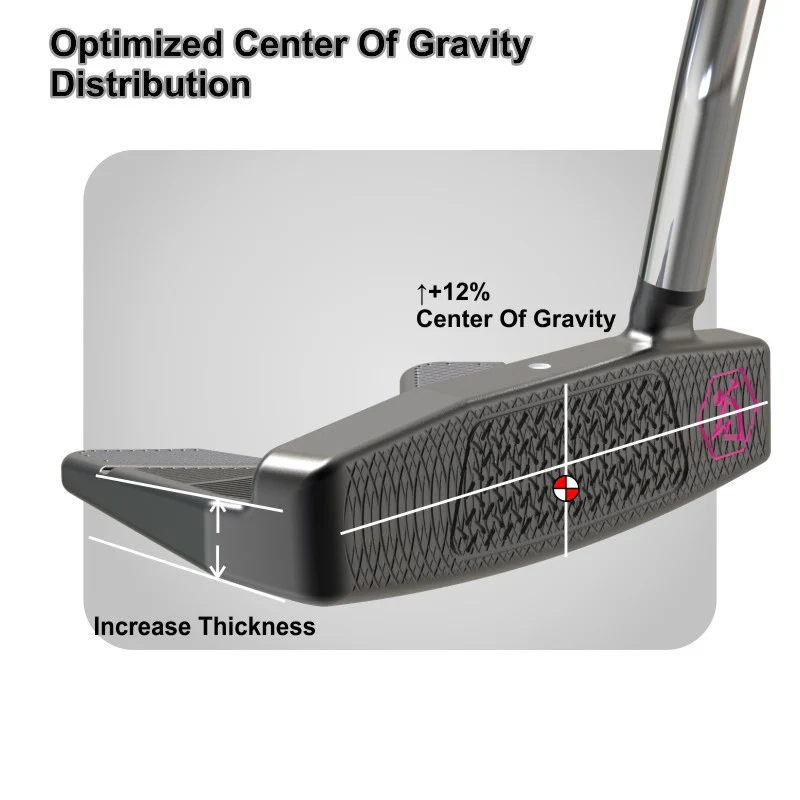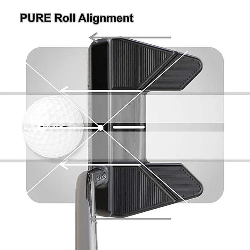 Thicker Main Body Wings본체에 두꺼운 윙(Wings, 날개 형태의 돌출부)을 특징으로 하며, 이는 무게 중심(CG)을 높이고 관성 모멘트(MOI)를 증가시켜 볼의 구름을 더욱 일관성 있게 만듭니다 또한, 이러한 설계는 임팩트 시 피드백 감각을 향상시키고, 지면에서의 볼 구름 성능을 개선하며, 퍼터에 더욱 안정적이고 견고한 외관을 더해줍니다 |