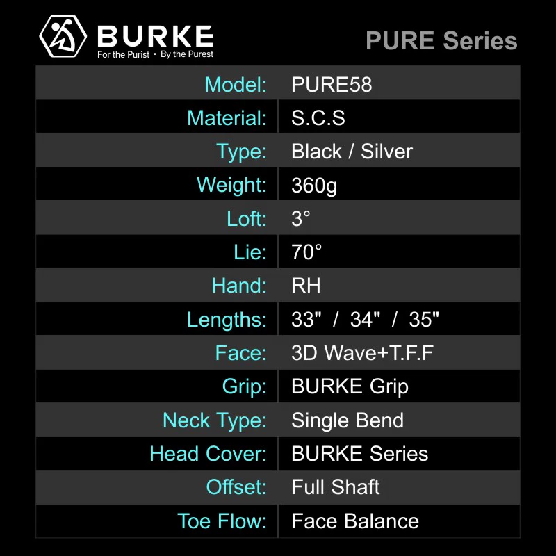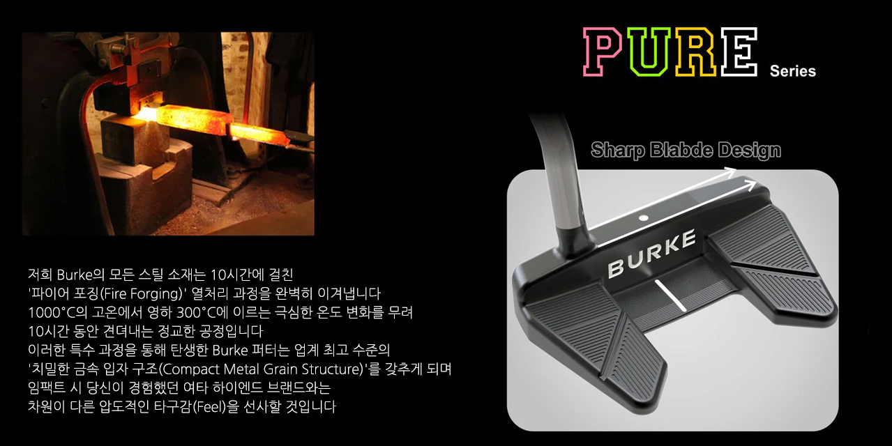 | Unique Tour Fit Face Putter Face Structure Design: Enhancing the Ball's Forward RollTOUR FIT Face (T.F.F.) 기술 Burke 퍼터의 투어 핏 페이스(Tour Fit Face, T.F.F.) 구조 설계는 가장 핵심적인 특징 중 하나입니다 이 독특한 디자인은 퍼터 페이스의 표면 텍스처와 탄성을 최적화하여 볼의 순회전(Forward Roll)을 획기적으로 향상시킵니다 이를 통해 견고한 타격감(Solid Impact)과 완벽한 피드백 사운드를 극대화합니다 실제 사용 시, 볼이 타격된 직후 불필요한 측면 스핀과 미끄러짐(Skidding)을 줄이고 훨씬 빠르게 안정적인 볼구름 상태에 진입하는 것이 확연히 드러납니다 결과적으로 퍼팅의 정확도와 일관성이 비약적으로 향상됩니다 Tour Fit Face는 장거리 퍼팅이든, 짧고 정교한 퍼팅이든 상관없이 볼의 구름 궤적을 더욱 효과적으로 제어할 수 있도록 도와주어, 퍼팅을 더욱 쉽고 정확하게 만들어 줍니다 |